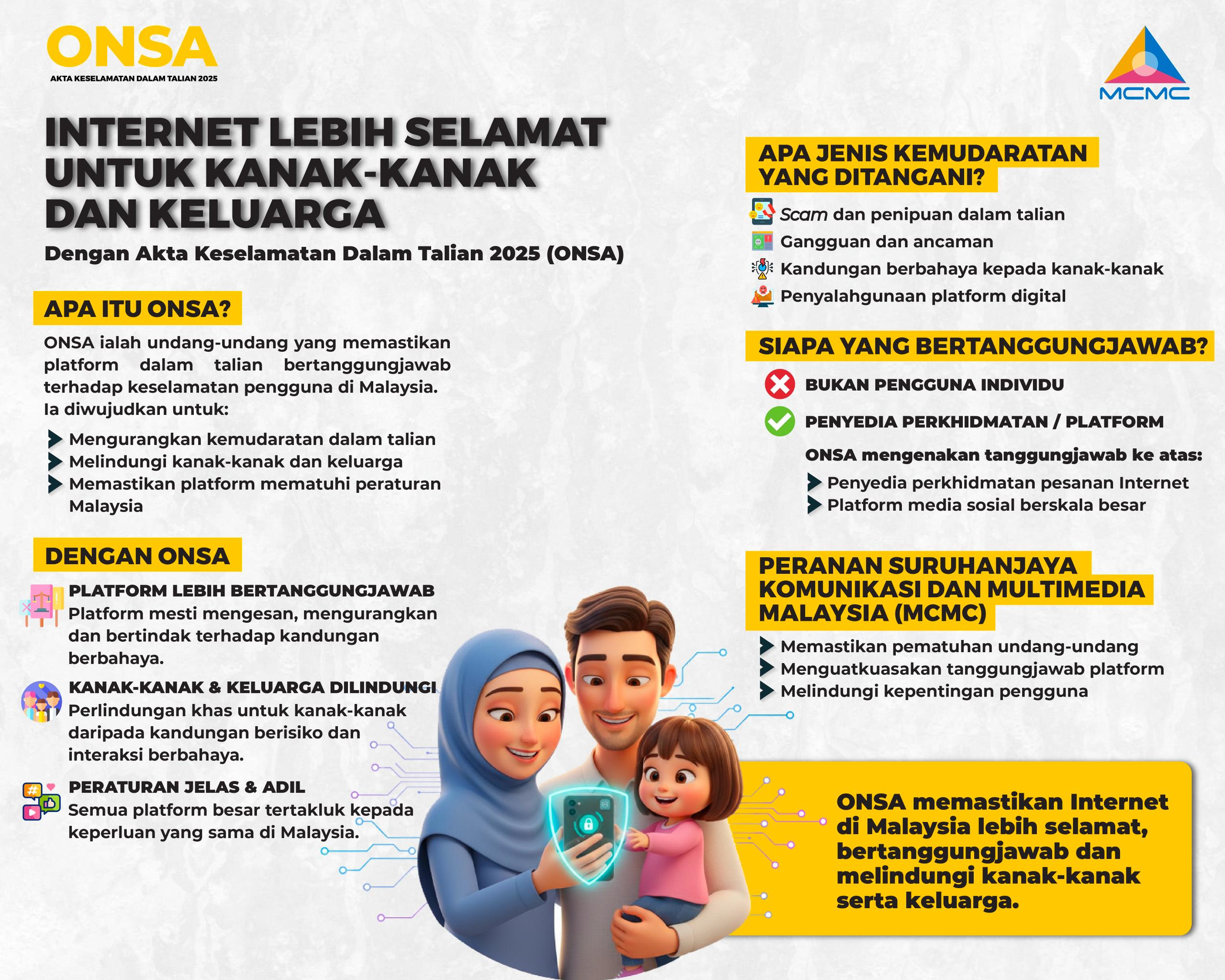 Akta Keselamatan Dalam Talian 2025 (ONSA) memperkukuh tanggungjawab platform digital demi keselamatan pengguna. Perlindungan kanak-kanak diutamakan, kandungan memudaratkan wajib ditangani. Keselamatan dalam talian bukan pilihan, ia tanggungjawab bersama. Maklumat lanjut mengenai ONSA boleh didapati di laman sesawang MCMC di https://mcmc.gov.my/en/onsa/home […]