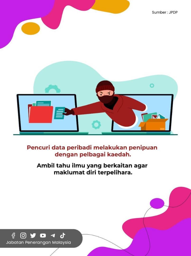 Pencuri data kini semakin licik! Lindungi diri anda dengan pengetahuan yang betul dan selalu berhati-hati ketika berurusan dalam talian. π Jangan kongsi info peribadi sesuka hati!π Semak kesahihan sebelum klik atau beri maklumat! Mari bersama-sama kita cegah jenayah siber! π»π‘
