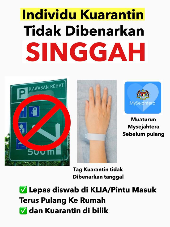 Bermula 10 Jun yang lepas, warganegara yang pulang dari luar negara menjalani kuarantin di rumah dan tidak lagi dikuarantin di Hotel. Individu yang diarahkan untuk kuarantin di rumah adalah disarankan untuk :