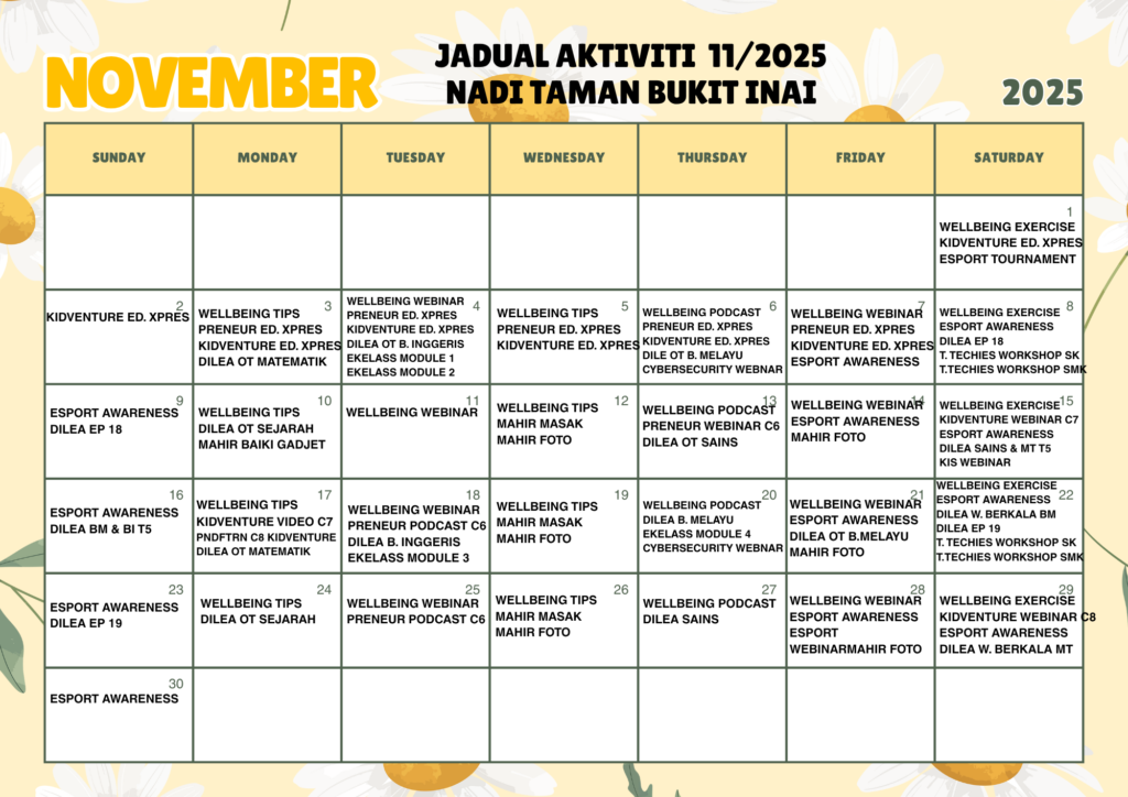 JADUAL AKTIVITI NADI TAMAN BUKIT INAI NOVEMBER 2025