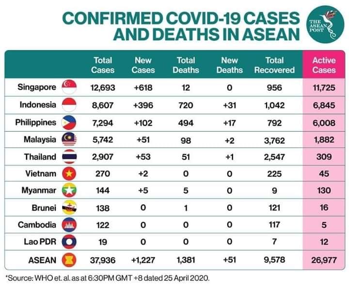 Jumla kes positif Covid-19 dan kematian di peringkat Asia sehingga 25.04.2020