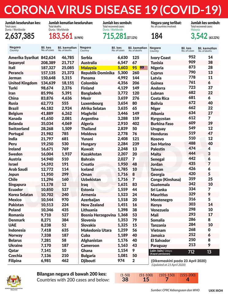 Statistik COVID-19 seluruh negara di dunia.