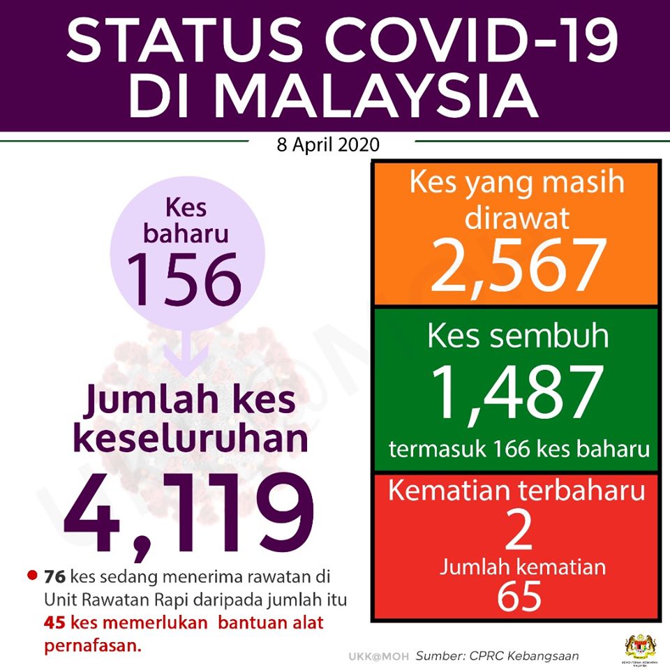 Status #COVID19Malaysia sehingga jam 5 petang pada 08 April 2020.