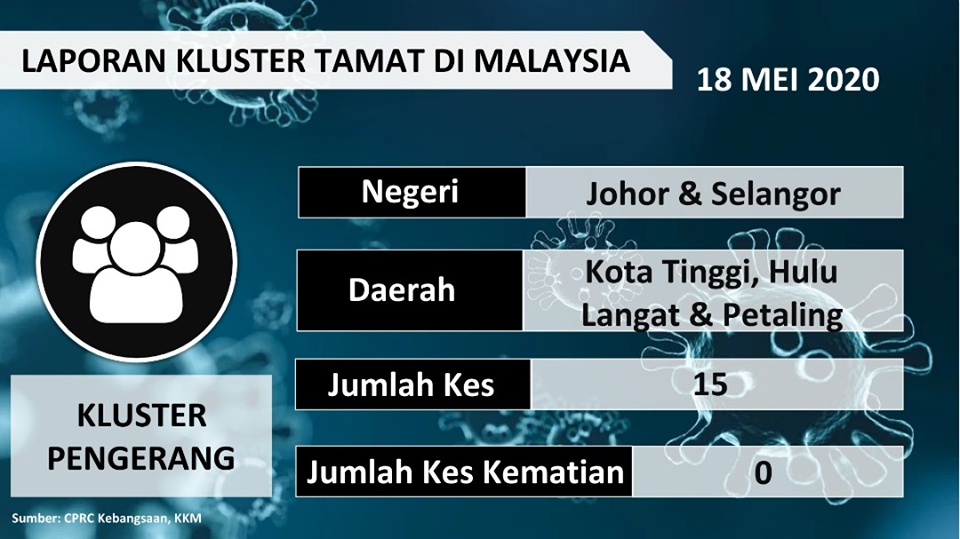 Terkini, #covid19malaysia KLUSTER DIISYTIHARKAN TAMAT, 18 Mei