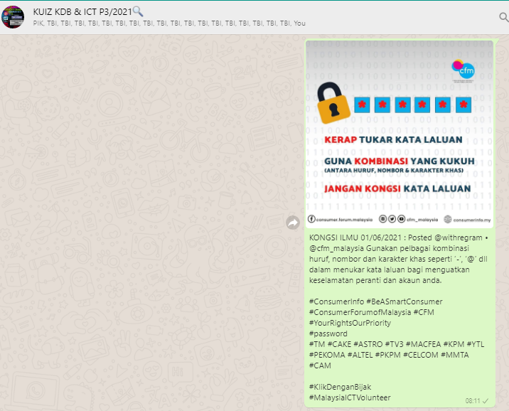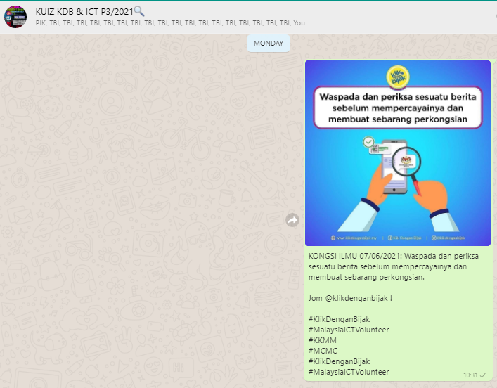 Kongsi Ilmu Klik Dengan Bijak (KDB) di Media Sosial Whatsapp
