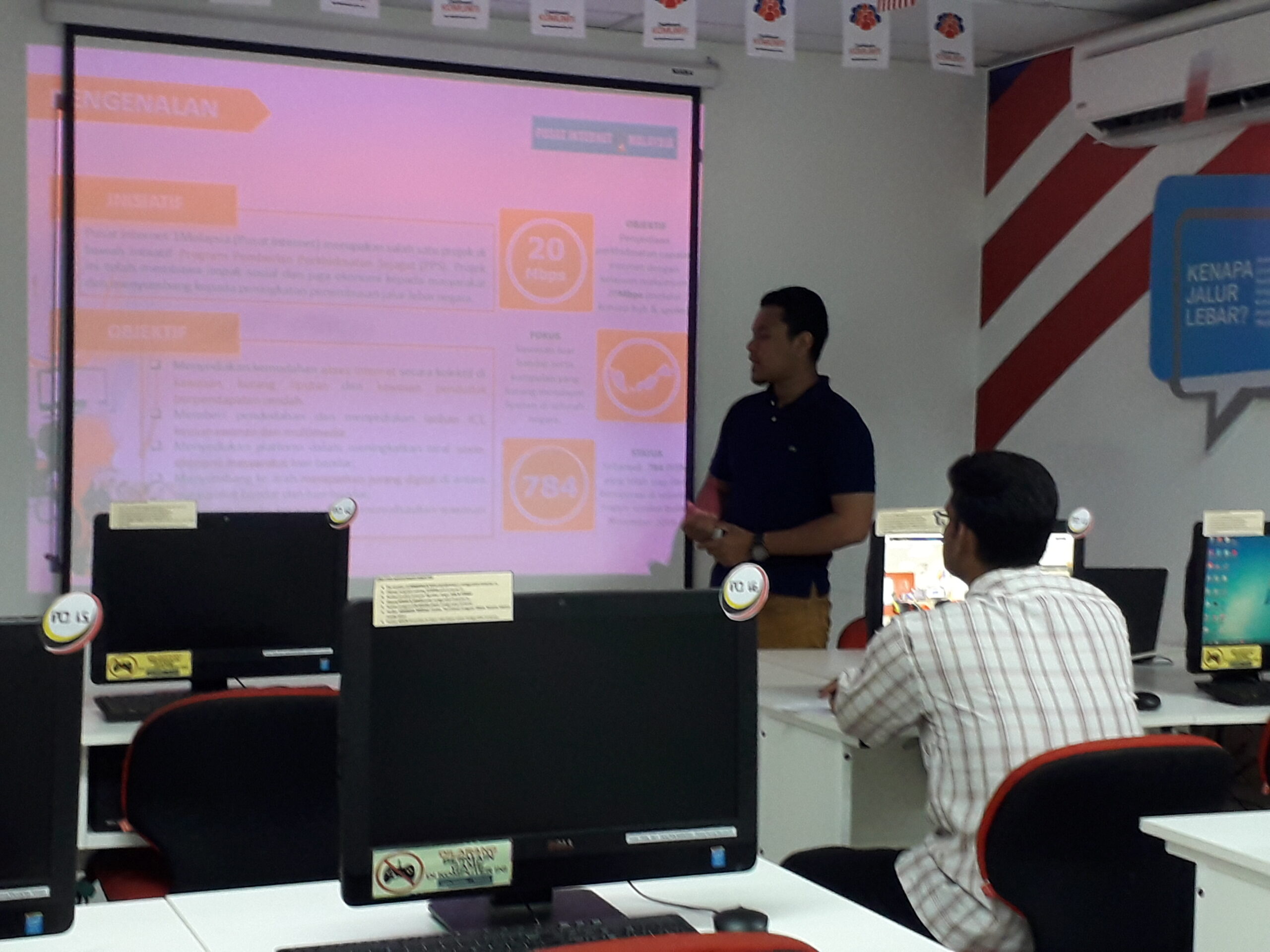 Usahawan diberi penerangan mengenai pengenalan dan objektif utama Pusat Internet 1Malaysia (PI1M) kepada komuniti setempat. Usahawan juga diberi penerangan berkenaan aplikasi terbaru di PI1M iaitu dashboard komuniti seperti my shop. Usahawan diajar tentang penggunaan my shop sebagai platform kemudahan kepada usahawan untuk mempromosikan produk mereka secara atas talian.